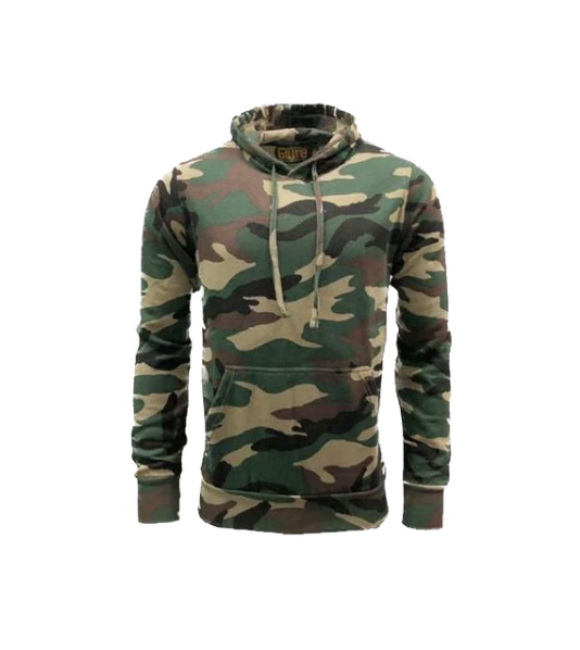 Woodland camouflage hoodie available in sizes up to 5XL. Made from heavy weight 300gsm brushed back fleece for extra warmth and durability.